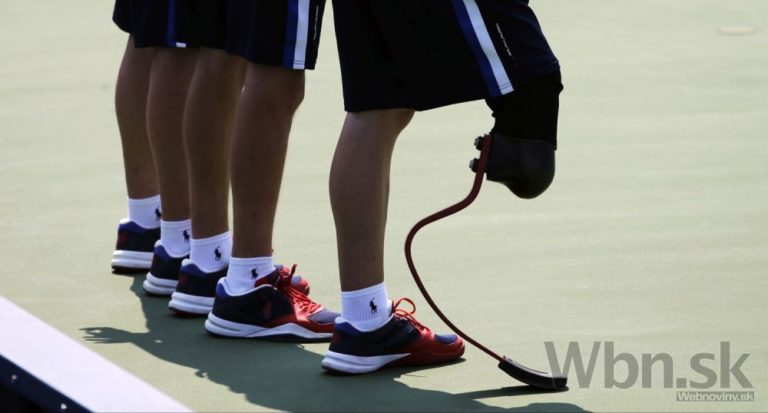 Zberač loptičiek Ryan McIntosh, ktorému mína odtrhla časť nohy, keď slúžil v Afganistane počas zápasu prvého kola US Open medzi americkým tenistom Johnom Isnerom a Tunisanom Malekom Jazirim. New York, 1. september 2015. Foto: SITA/AP