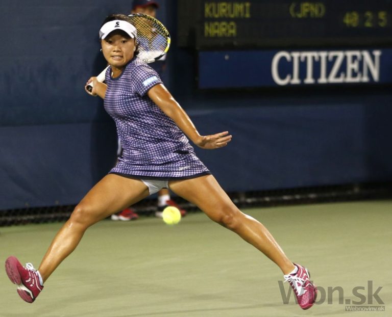 Japonská tenistka Kurumi Narová počas zápasu prvého kola US Open, v ktorom zdolala Francúzku Alizé Cornetovú 2:6, 6:4, 6:4. New York, 1. september 2015. Foto: SITA/AP