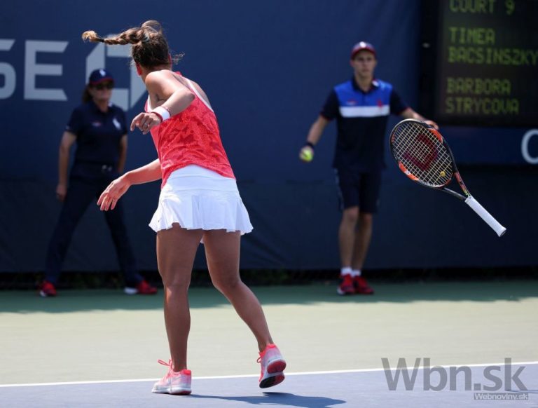 Česká tenistka Barbora Strýcová počas zápasu prvého kola US Open, v ktorom zdolala Timeu Bacsinszkú 7:5, 6:0. New York, 1. september 2015. Foto: SITA/AP
