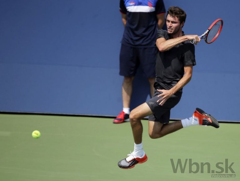 Francúzsky tenista Giles Simon počas zápasu prvého kola US Open, v ktorom prehral s Američanom Donaldom Youngom 6:2, 6:4, 4:6, 4:6, 4:6. New York, 1. september 2015. Foto: SITA/AP
