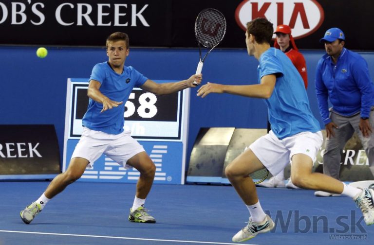 Slovenský tenista Alex Molčan (vľavo) a Poliak Hubert Hurkacz prehrali vo finále štvorhry juniorov na Australian Open v Melbourne s domácim párom Jake Delaney, Marc Polmans za 54 minút tesne 6:0, 2:6, 8:10 (zápasový tajbrejk). Foto: SITA/AP