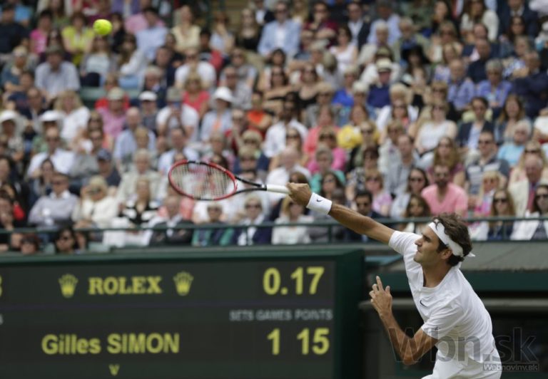 Švajčiar Roger Federer počas zápasu štvrťfinále Wimbledonu, v ktorom zdolal Francúza Gillesa Simona. Londýn, 8. júl 2015. Foto: SITA/AP