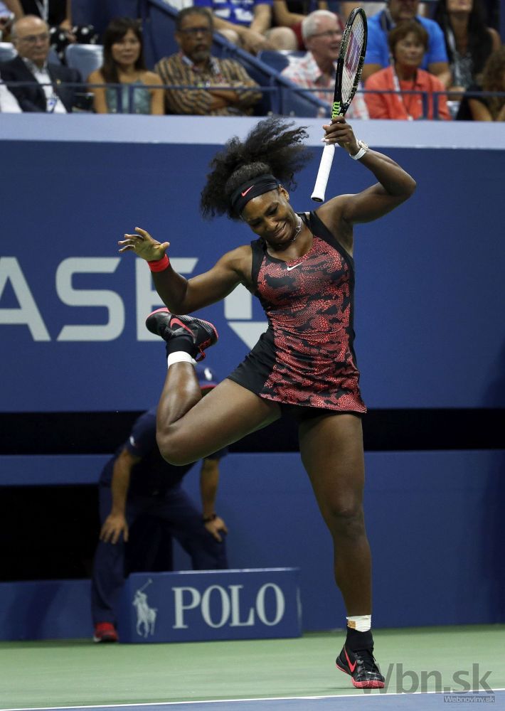 Americká tenistka Serena Williamsová počas zápasu 3. kola US Open, v ktorom porazila krajanku Bethanie Mattekovú-Sandsovú 3:6, 7:5, 6:0. New York, 4. september 2015. Foto: SITA/AP