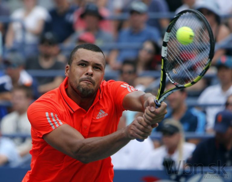 Francúz Jo-Wilfried Tsonga počas zápasu 3. kola US Open proti Ukrajincovi Sergijovi Stachovskijovi, ktorého zdolal 6:3, 7:5, 6:2. Foto: SITA/AP