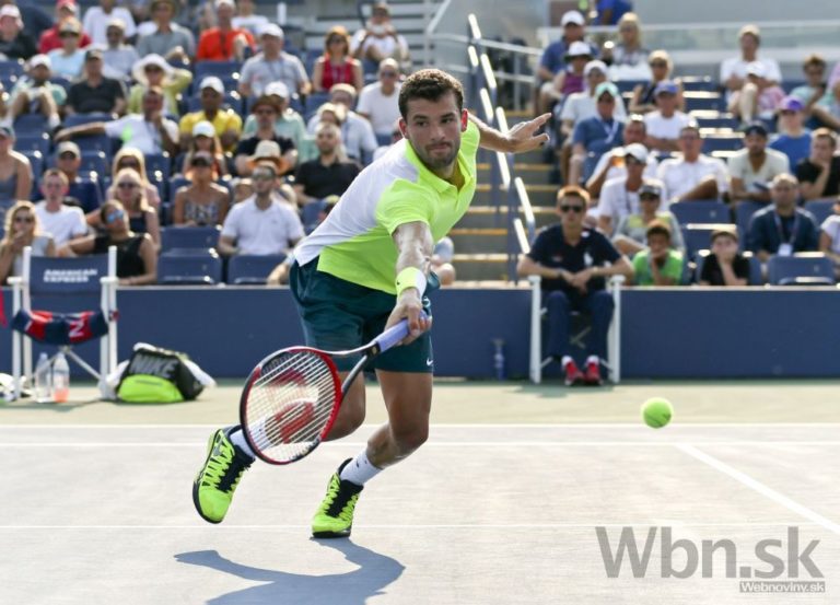 Bulharský tenista Grigor Dimitrov počas zápasu 2. kola US Open, v ktorom prehral s Michailom Kukuškinom z Kazachstanu 3:6, 6:7, 6:2, 6:4, 4:6. New York, 2. september 2015. Foto: SITA/AP