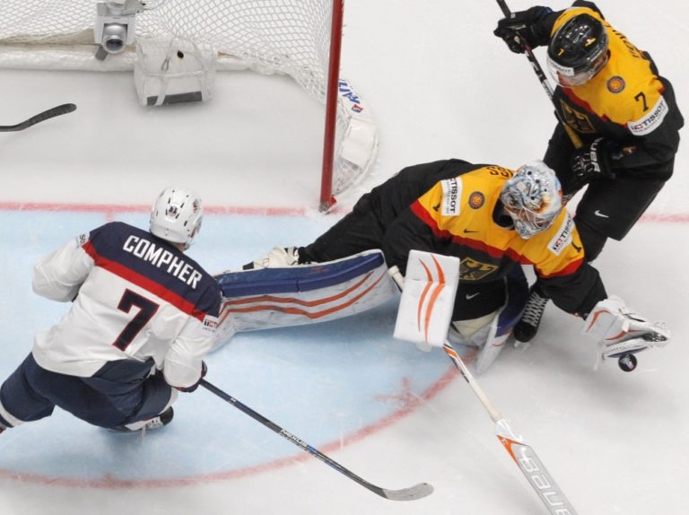 Nemecký brankárThomas Greiss likviduje šancu USA počas zápasu B-skupiny na svetovom šampionáte v Rusku. Petrohrad, 15. máj 2016. Foto: SITA/AP