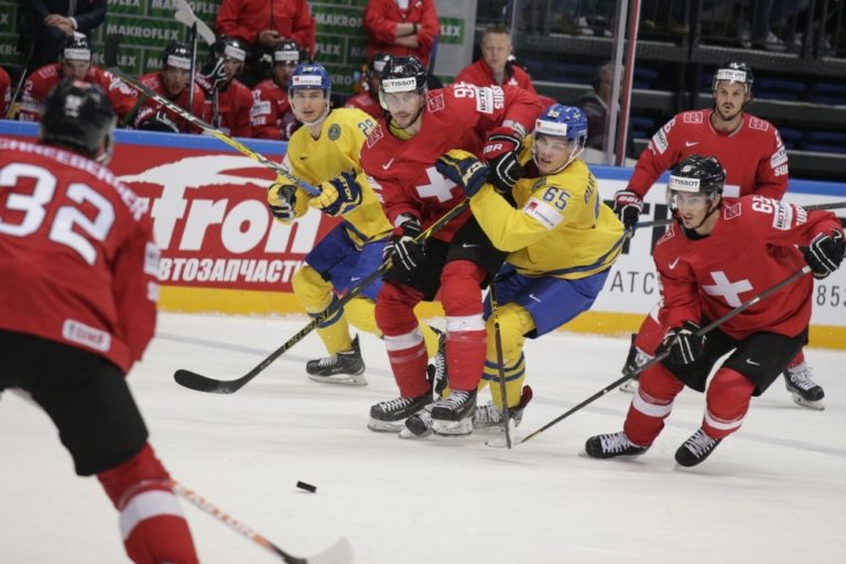 Situácia zo zápasu A-skupiny medzi Švédskom a Švajčiarskom na svetovom šampionáte v Rusku. Moskva, 15. máj 2016. Foto: SITA/AP