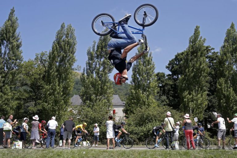 Fanúšikovia sledujú cyklistický pelotón počas desiatej etapy Tour de France z Tarbes do La Pierre Saint Martin, ktorá meria 167 km. Foto: SITA/ AP