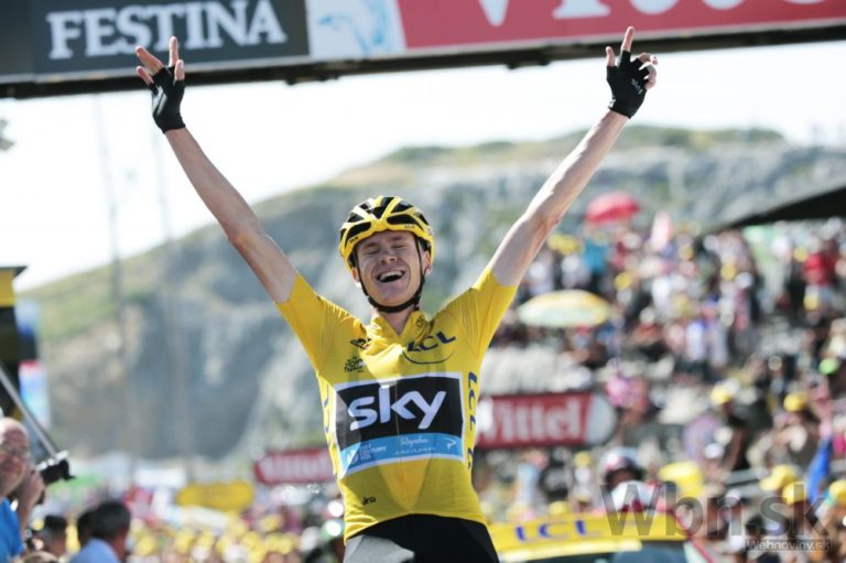 Christopher Froome sa teší z víťazstva desiatej etapy Tour de France z Tarbes do La Pierre Saint Martin, ktorá merala 167 km. Foto: SITA/ AP