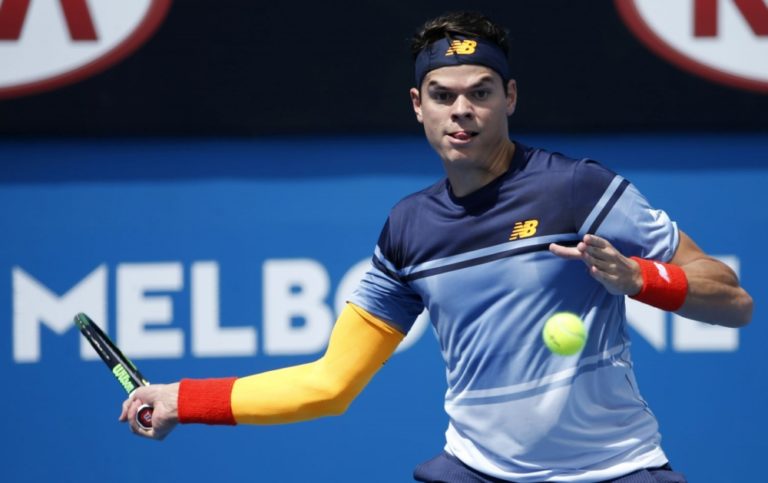 Kanadský tenista Milos Raonic počas zápasu prvého kola Australian Open, v ktorom porazil Francúza Lucasa Pouilleho 6:1, 6:4, 6:4. Melbourne, 19. január 2016. Foto: SITA/AP