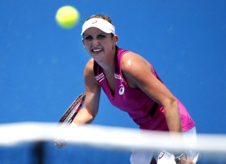Austrálska tenistka Kimberly Birrellová počas zápasu prvého kola Australian Open, v ktorom prehrala s Češkou Karolínou Plíškovou dvakrát 4:6. Melbourne, 19. január 2016. Foto: SITA/AP