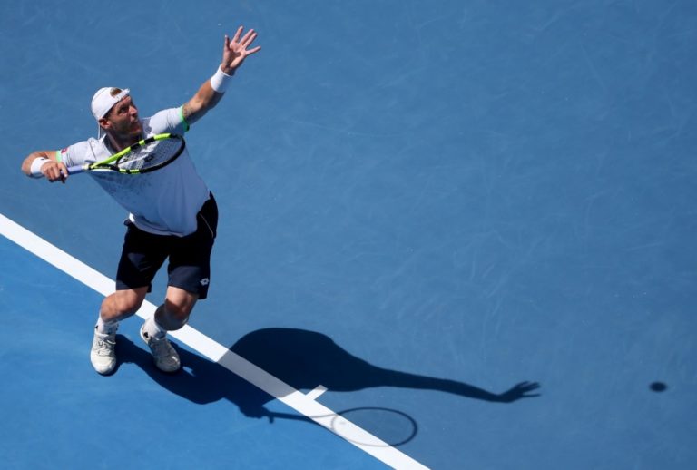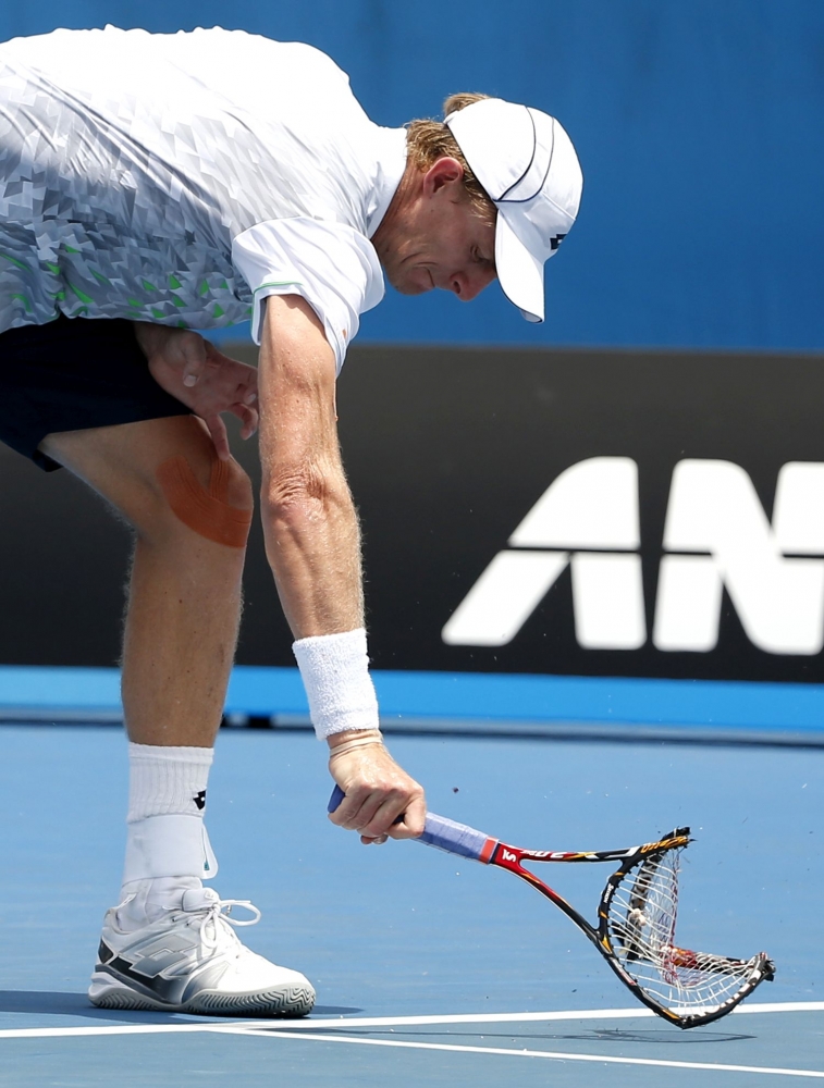 Juhoafrický tenista Kevin Anderson počas zápasu prvého kola Australian Open proti Američanovi Rajeevovi Ramovi, z ktorého za stavu 6:7, 7:6, 3:6 a 0:3 odstúpil. Melbourne, 19. január 2016. Foto: SITA/AP
