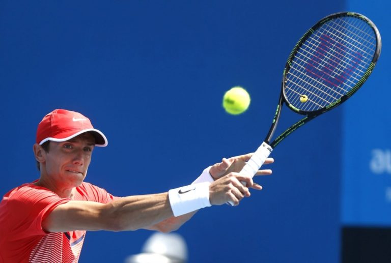 Uzbecký tenista Denis Istomin počas zápasu prvého kola Australian Open, v ktorom podľahol Austrálčanovi Bernardovi Tomicovi 7:6, 4:6, 4:6, 4:6. Melbourne, 19. január 2016. Foto: SITA/AP