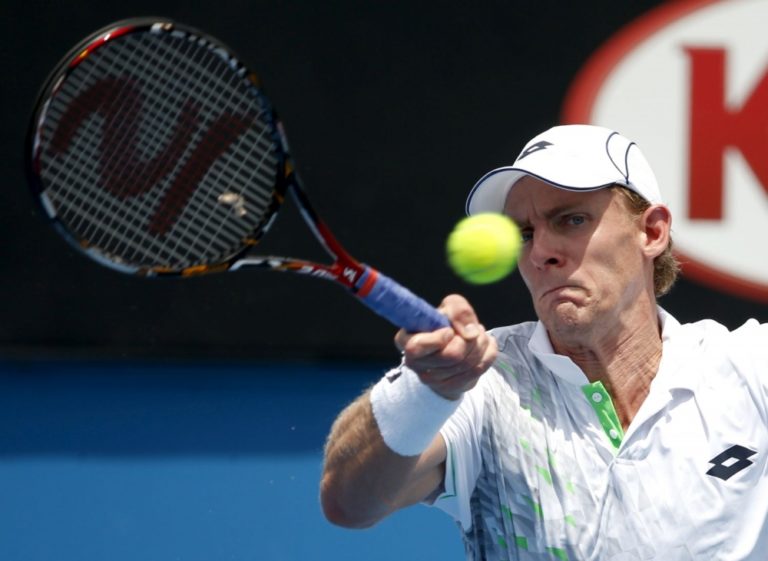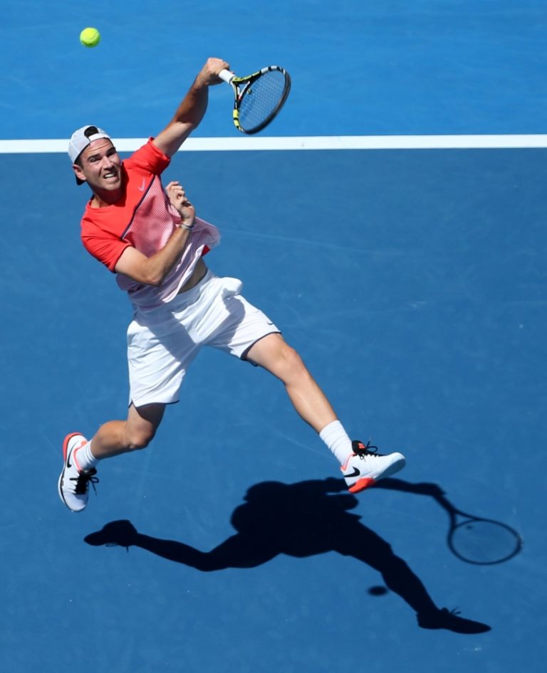 Austrálsky tenista Sam Groth počas zápasu prvého kola Australian Open, v ktorom porazil Francúza Adriana Mannarina 7:6 (6), 6:4, 3:6, 6:3 . Melbourne, 19. január 2016. Foto: SITA/AP