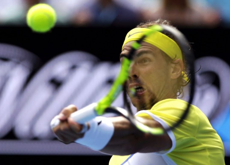 Španielsky tenista Fernando Verdasco počas zápasu prvého kola Australian Open, v ktorom prekvapujúco zdolal krajana Rafaela Nadala 7:6, 4:6, 3:6, 7:6, 6:2. Melbourne, 19. január 2016. Foto: SITA/AP