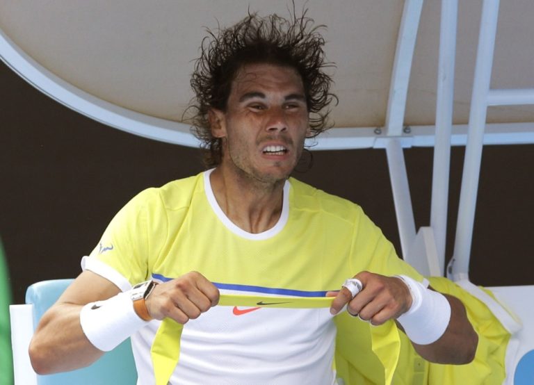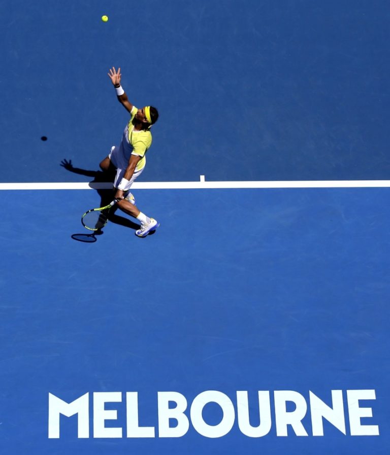 Španielsky tenista Rafael Nadal počas zápasu prvého kola Australian Open, v ktorom podľahol krajanovi Fernandovi Ferdascovi 6:7, 6:4, 6:3, 6:7, 2:6. Melbourne, 19. január 2016. Foto: SITA/AP