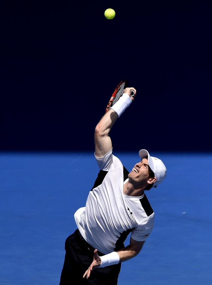 Britský tenista Andy Murray počas zápasu prvého kola Australian Open, v ktorom deklasoval Nemca Alexandra Zvereva 6:1, 6:2, 6:3. Melbourne, 19. január 2016. Foto: SITA/AP