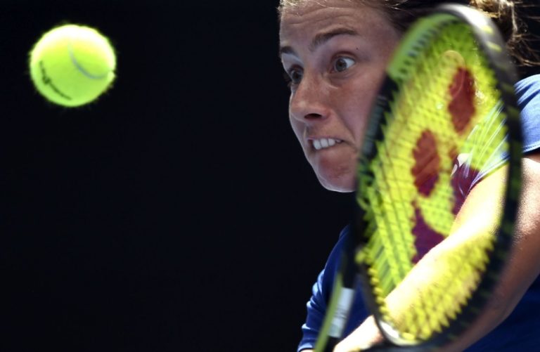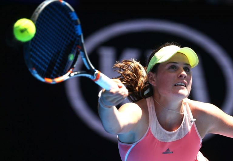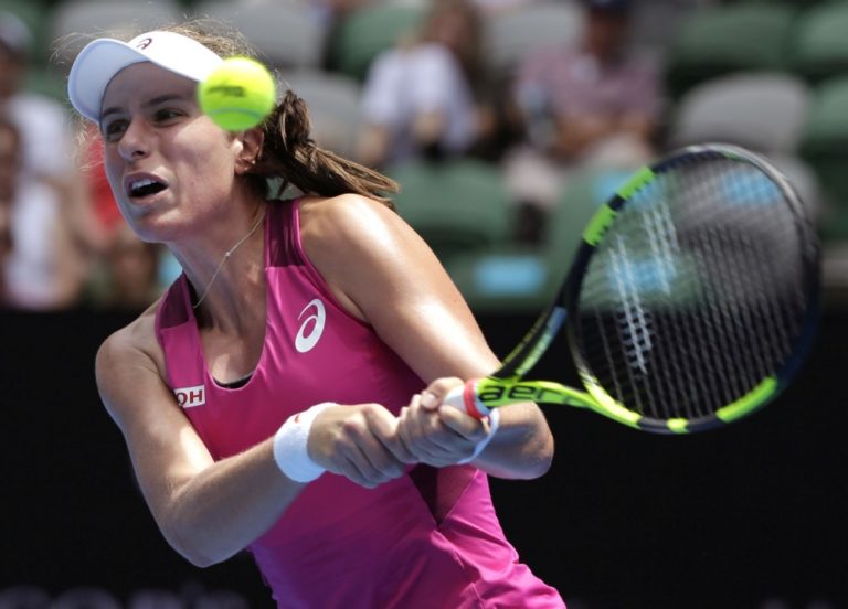Britská tenistka Johanna Kontová počas zápasu prvého kola Australian Open, v ktorom prekvapujúco zdolala Američanku Venus Williamsovú 6:4, 6:2. Melbourne, 19. január 2016. Foto: SITA/AP