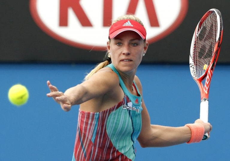 Nemecká tenistka Angelique Kerberová počas zápasu prvého kola Australian Open, v ktorom porazila Japonku Misaki Doiovú 6:7 (4), 7:6 (6), 6:3. Melbourne, 19. január 2016. Foto: SITA/AP