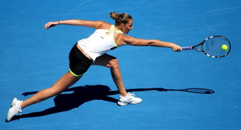 Česká tenistka Karolína Plíšková počas zápasu prvého kola Australian Open, v ktorom porazila Austrálčanku Kimberly Birrellovú dvakrát 6:4. Melbourne, 19. január 2016. Foto: SITA/AP