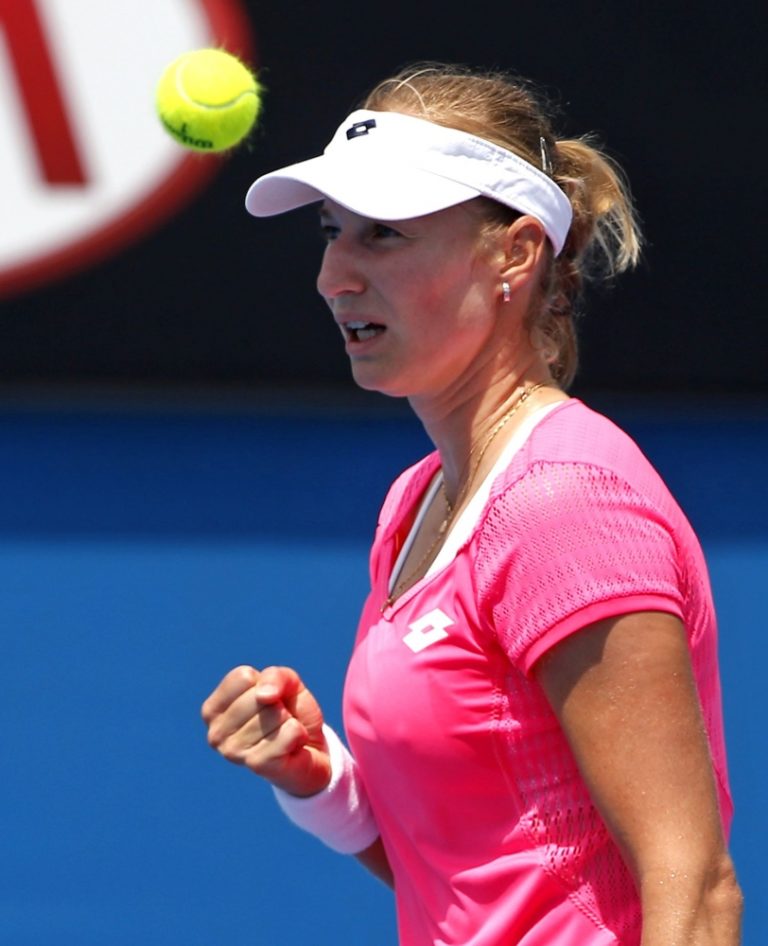 Ruská tenistka Jekaterina Makarovová počas zápasu prvého kola Australian Open, v ktorom hladko zdolala Austrálčanku Maddison Inglisovú 6:3, 6:0. Melbourne, 19. január 2016. Foto: SITA/AP