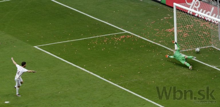 Španielsky futbalista Xabi Alonso premieňa pokutový kop v piatkovom zápase B-skupiny na MS vo futbale. Foto: SITA/AP