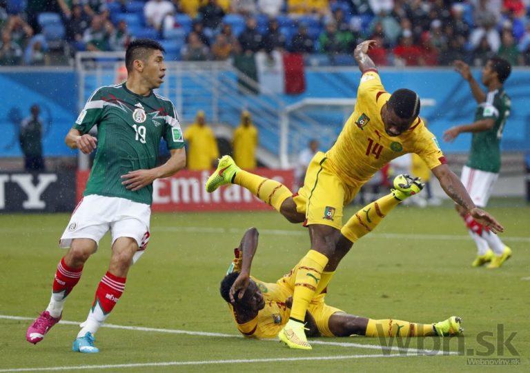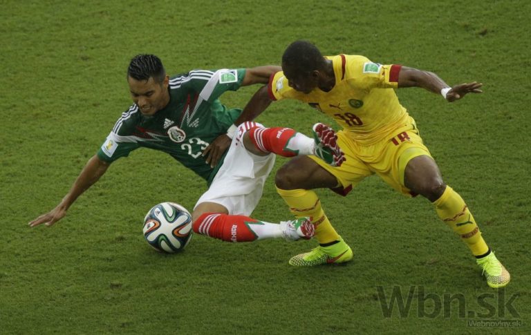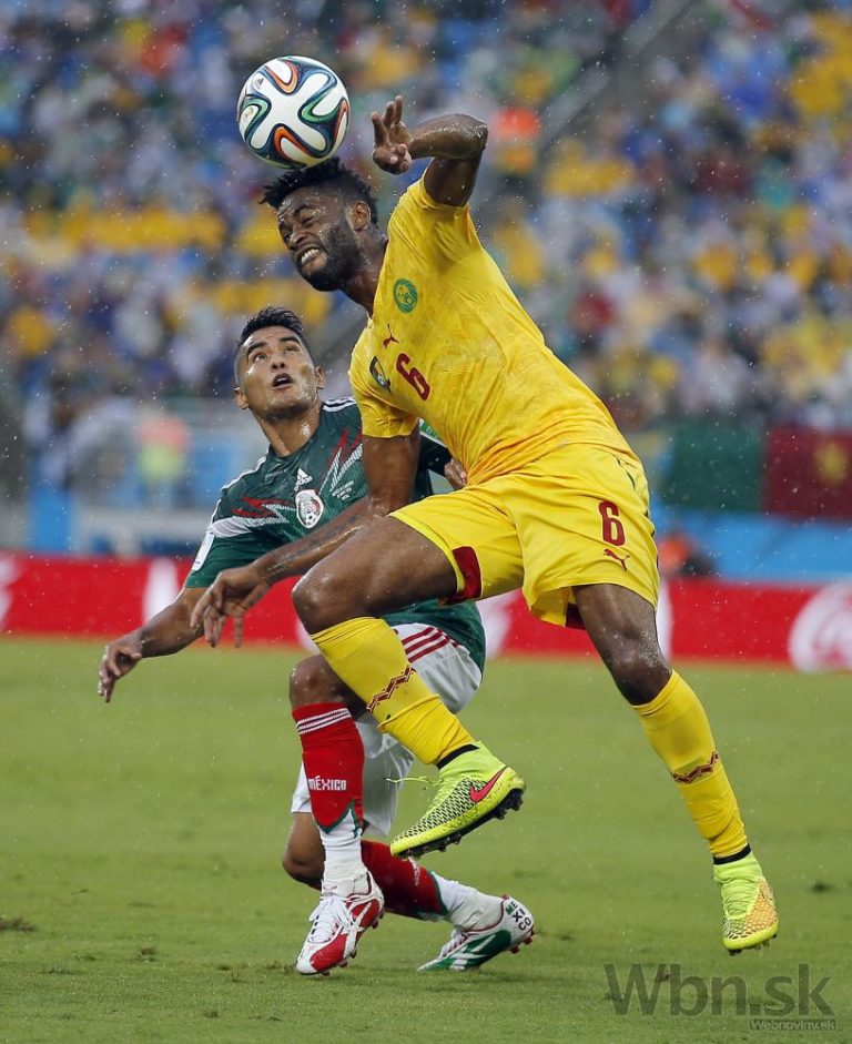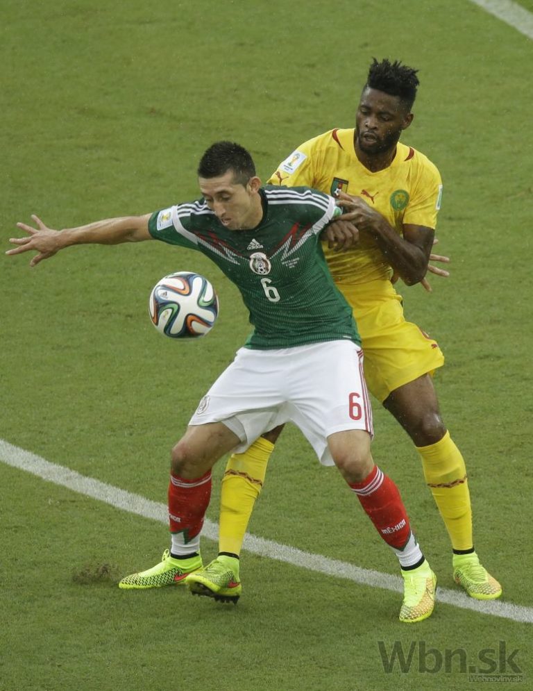 Mexický futbalista Hector Herrera v súboji s Kamerunčanom Alexom Songom počas piatkového zápasu A-skupiny na MS vo futbale. Foto: SITA/AP
