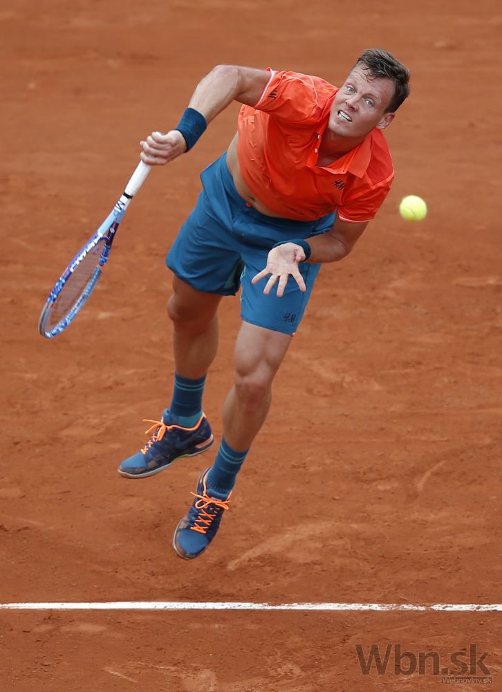 Český tenista Tomáš Berdych počas zápasu prvého kola na Roland Garros, v ktorom zdolal Japonca Jošihita Nišioku 6:0, 7:5, 6:3. Paríž, 25. máj 2015. Foto: SITA/AP