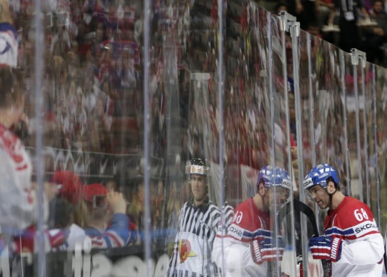 Český hokejista Jaromír Jágr odchádza na trestnú lavicu počas zápasu A-skupiny na svetovom šampionáte v Česku. Praha, 10. máj 2015. Foto: SITA/AP