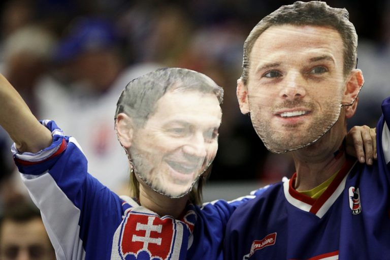 Fanúšikovia počas zápasu Fínsko - Slovensko základnej B-skupiny majstrovstiev sveta v ľadovom hokeji 2015 v Českej republike. Ostrava, Česká republika, 9. máj 2015. Foto: SITA/Ján Viazanička