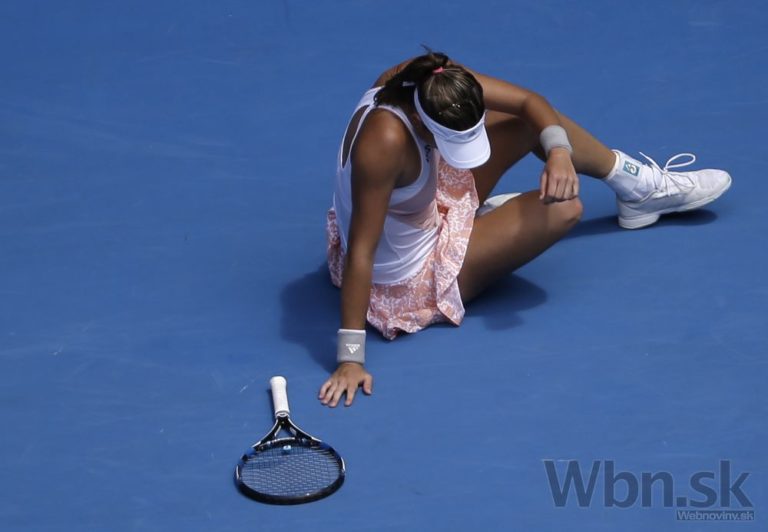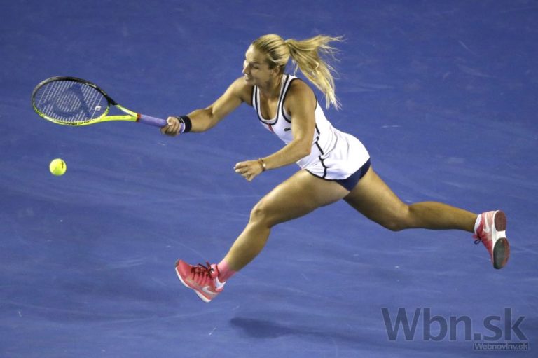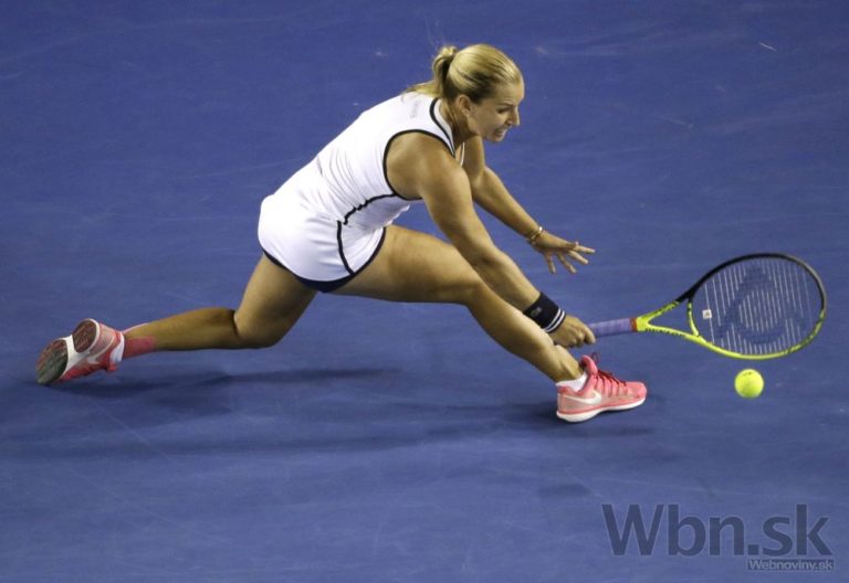 Slovenská tenistka Dominika Cibulková počas osemfinálového zápasu Australian Open, v ktorom v trojsetovej bitke zdolala Bielorusku Viktoriu Azarenkovú za 129 minút 6:2, 3:6, 6:3. Melbourne, 26. január 2015. Foto: SITA/AP