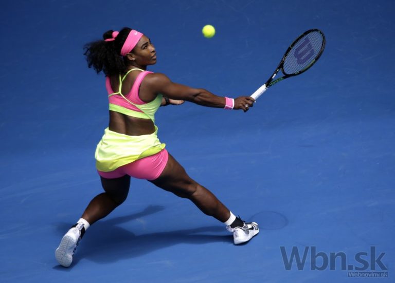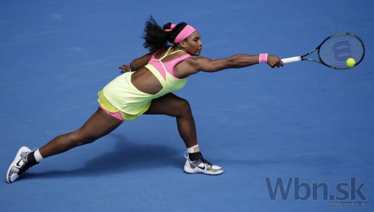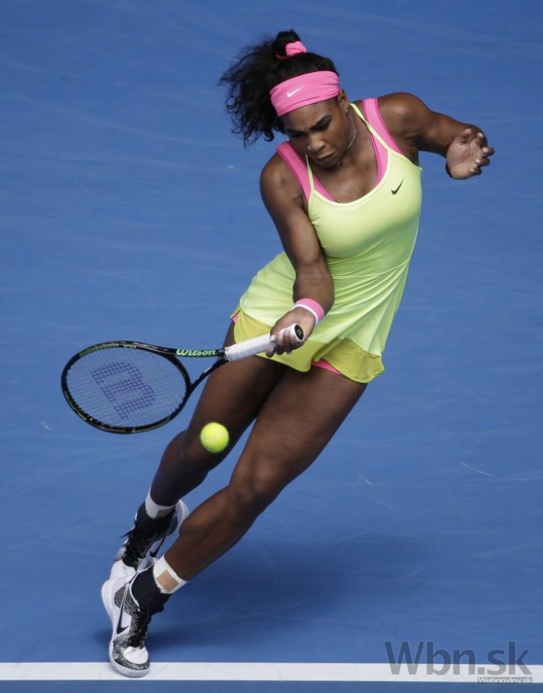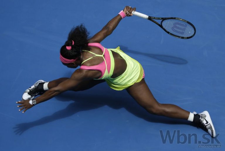 Americká tenistka Serena Williamsová počas osemfinálového zápasu na Australian Open, v ktorom porazila Španielku Garbinu Muguruzovú-Blancovú 2:6, 6:3, 6:2. Melbourne, 26. január 2015. Foto: SITA/AP