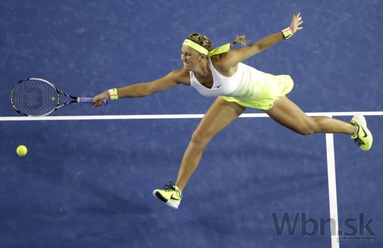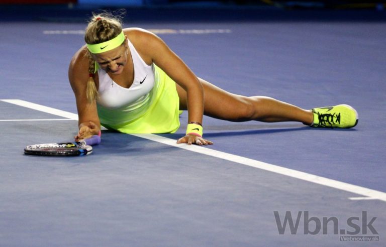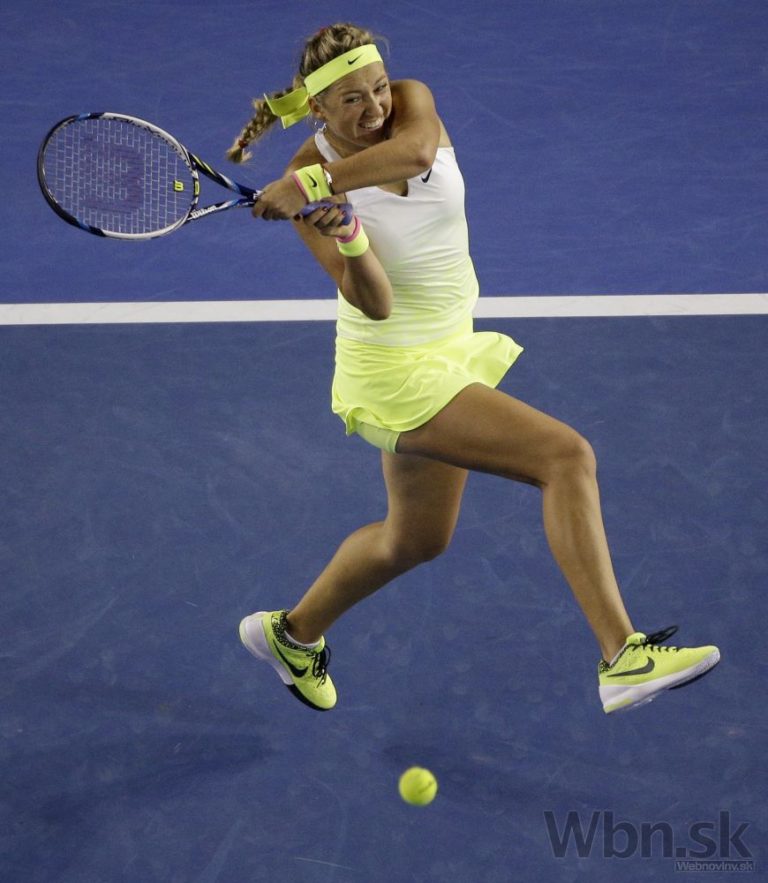 Bieloruská tenistka Viktoria Azarenková počas osemfinálového zápasu Australian Open, v ktorom prehrala so Slovenkou Dominikou Cibulkovou za 129 minút 2:6, 6:3, 3:6. Melbourne, 26. január 2015. Foto: SITA/AP