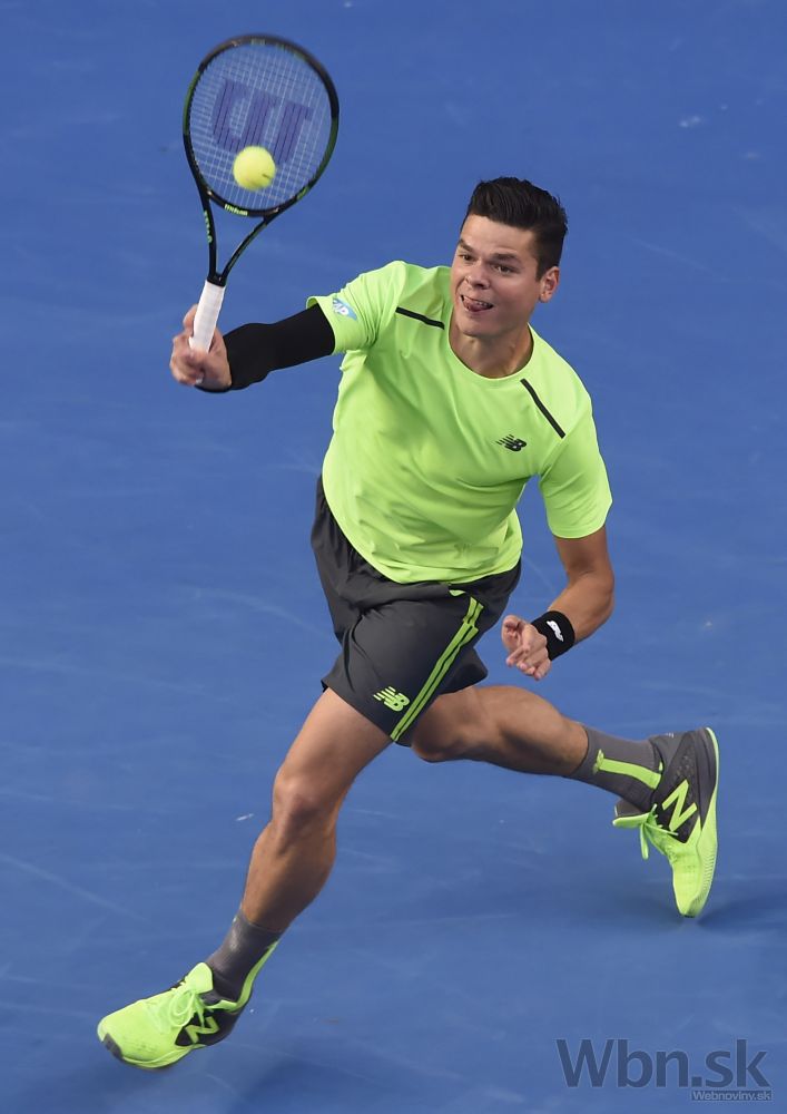 Kanadský tenista Milos Raonic počas osemfinálového zápasu Australian Open, v ktorom porazil Španiela Feliciana Lópeza 6:4, 4:6, 6:3, 6:7 (7), 6:3. Melbourne, 26. január 2015. Foto: SITA/AP