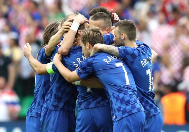Radosť Chorvátov po góle v sieti Česka počas zápasu na majstrovstvách Európy. Saint-Etienne, 17. jún 2016. Foto: SITA/AP