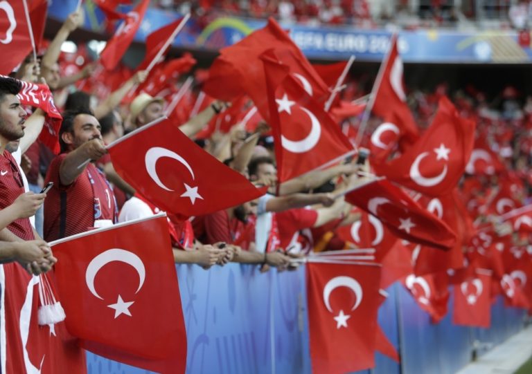 Fanúšikovia Turecka počas zápasu na majstrovstvách Európy. Nice, 17. jún 2016. Foto: SITA/AP