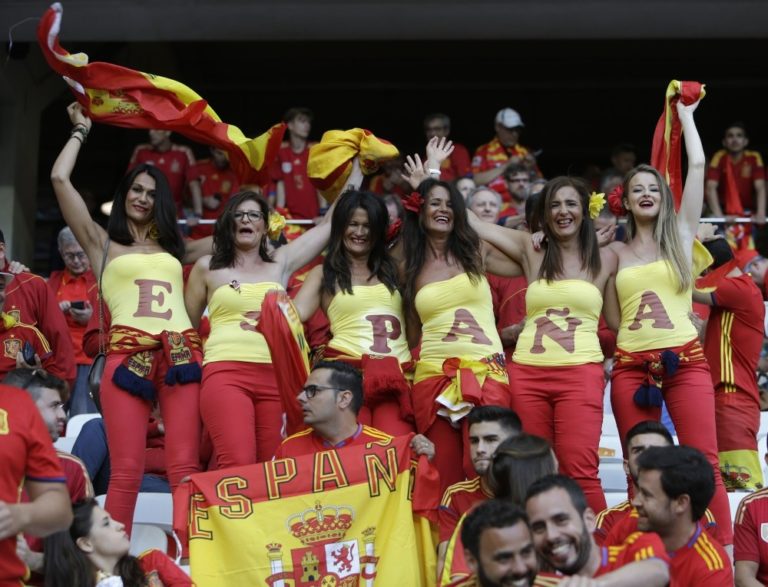 Fanúšikovia Španielska počas zápasu na majstrovstvách Európy. Nice, 17. jún 2016. Foto: SITA/AP