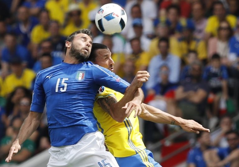 Hráč Talianska Andrea Barzagli počas zápasu na majstrovstvách Európy. Toulouse, 17. jún 2016. Foto: SITA/AP