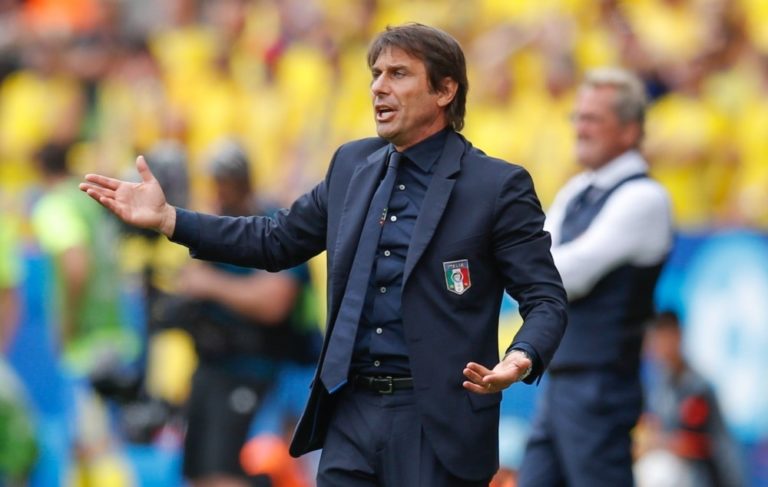 Tréner Talianska Antonio Conte počas zápasu na majstrovstvách Európy. Toulouse, 17. jún 2016. Foto: SITA/AP