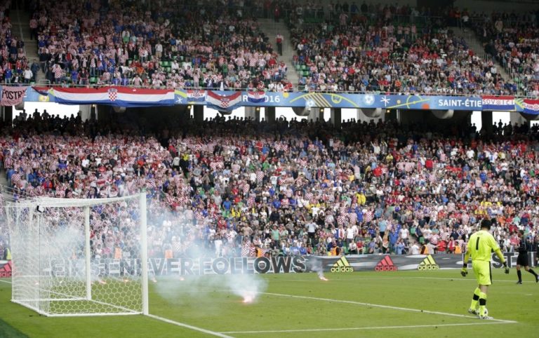 Výtržnosti fanúšikov Chorvátska počas zápasu na majstrovstvách Európy. Saint-Etienne, 17. jún 2016. Foto: SITA/AP