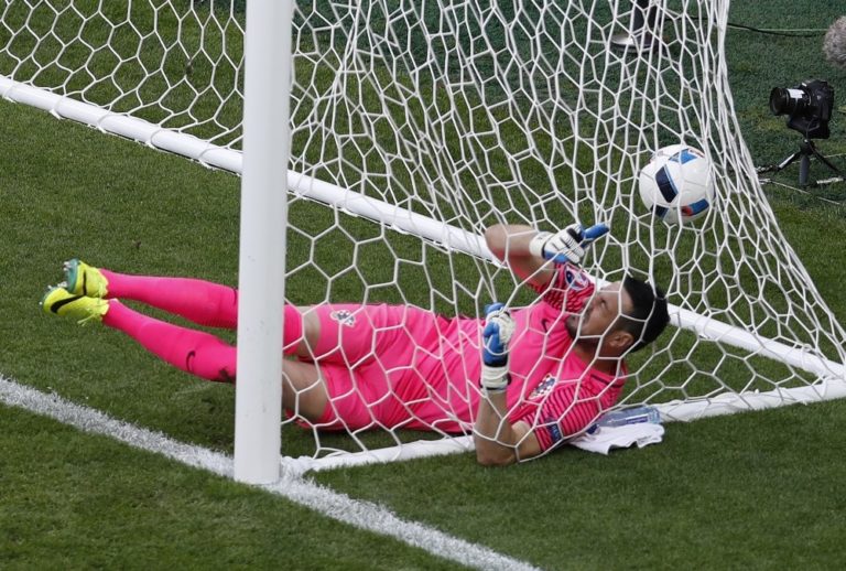 Brankár Chorvátska Danijel Subašič inkasuje gól počas zápasu na majstrovstvách Európy. Saint-Etienne, 17. jún 2016. Foto: SITA/AP