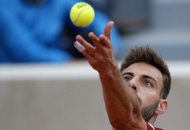 Španiel Marcel Granollers-Pujol počas zápasu druhého kola na Roland Garros, v ktorom zdolal Francúza Nicolasa Mahuta 6:3, 6:2, 1:0 (skreč, Mahut odstúpil). Foto: SITA/AP