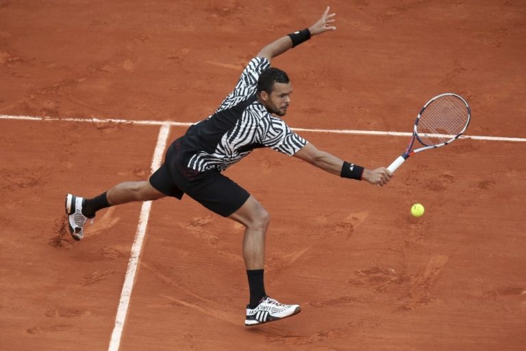 Francúz Jo-Wilfried Tsonga počas zápasu druhého kola na Roland Garros, v ktorom zdolal Cyperčana Marca Baghdatisa 6:7, 3:6, 6:3, 6:2, 6:2. Foto: SITA/AP