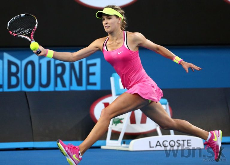 Kanadská tenistka Eugenie Bouchardová počas zápasu 1. kola na Australian Open, v ktorom zdolala Nemku Annu-Lenu Friedsamovú 6:2, 6:4 . Melbourne, 19. január 2015. Foto: SITA/AP