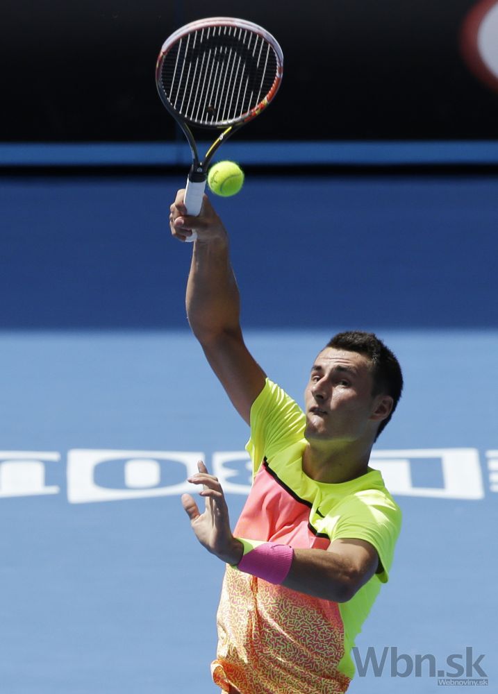 Austrálsky tenista Bernard Tomic počas zápasu prvého kola na Australian Open, v ktorom zdolala Nemca Tobiasa Kamkeho 7:5, 6:7, 6:3, 6:2. Melbourne, 19. január 2015. Foto: SITA/AP