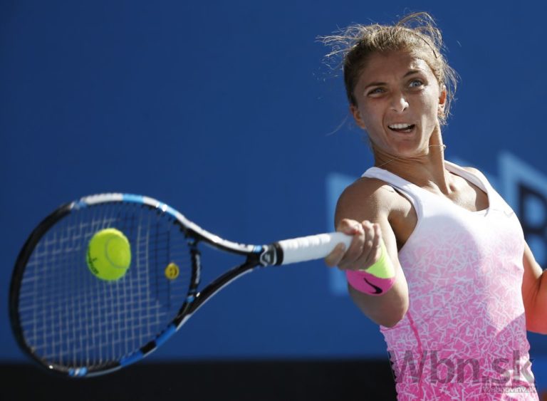Talianska tenistka Karin Knappová počas zápasu prvého kola na Australian Open, v ktorom prehrala s Rumunkou Simonou Halepovou 3:6 , 2:6. Melbourne, 19. január 2015. Foto: SITA/AP