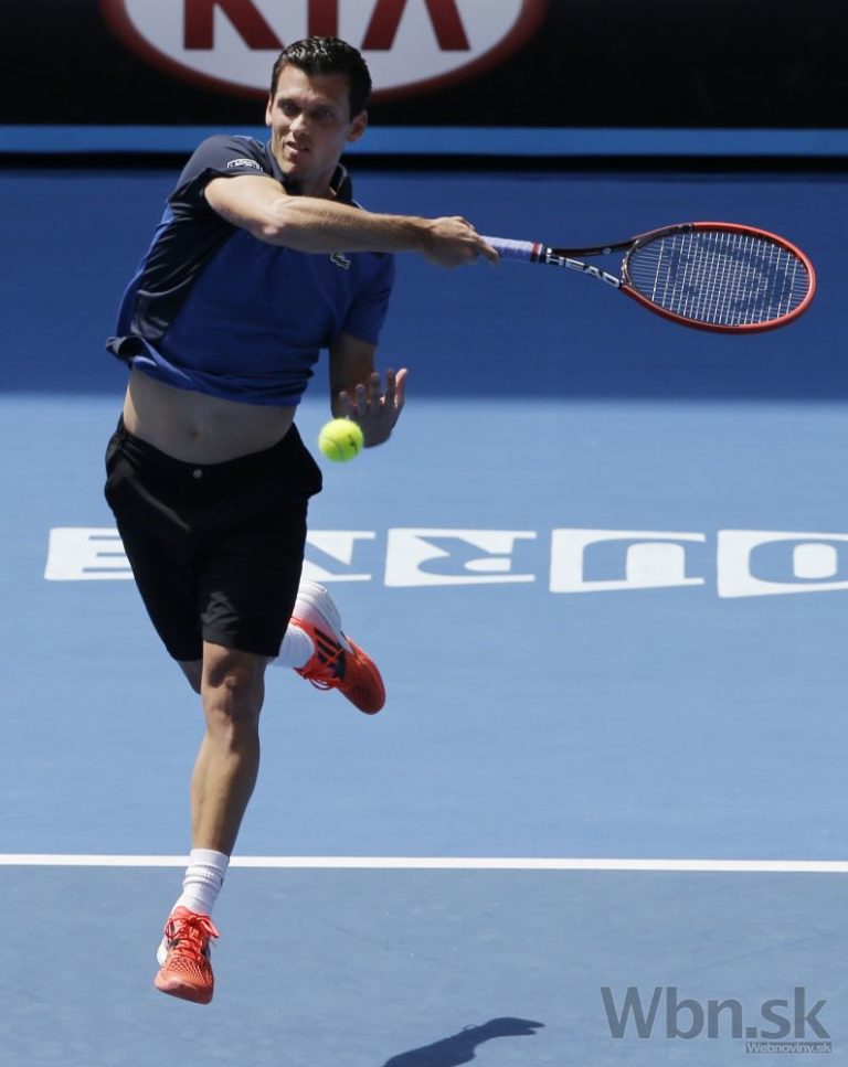 Slovenský tenista Martin Kližan počas zápasu prvého kola na Australian Open, v ktorom vyhral nad Japoncom Tacumom Itom 7:6 (6), 6:2, 6:4. Melbourne, 19. január 2015. Foto: SITA/AP