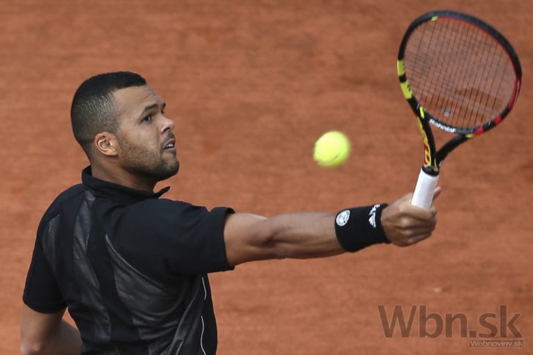 Lotyšský tenista Jo-Wilfried Tsonga počas prvého kola na Roland Garros v Paríži, v ktorom zdolal Holanďana Igora Sijslinga 6:4, 6:4, 7:6 (3). Foto: SITA/AP