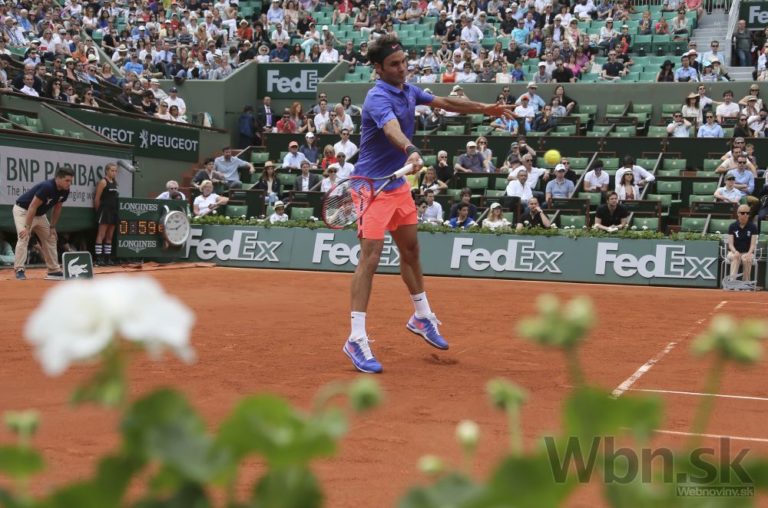 Švajčiarsky tenista Roger Federer počas prvého kola na Roland Garros, v ktorom presvedčivo porazil kolumbijského ľavorukého lucky losera z kvalifikácie Alejandra Fallu 6:3, 6:3, 6:4. Foto: SITA/AP