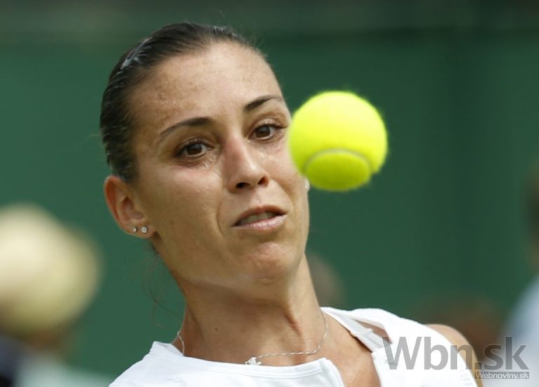 Talianska tenistka Flavia Pennettová počas zápasu prvého kola na Wimbledone, v ktorom podľahla Zarine Dijasovej z Kazachstanu 3:6, 6:2, 4:6. Londýn, 29. jún 2015. Foto: SITA/AP